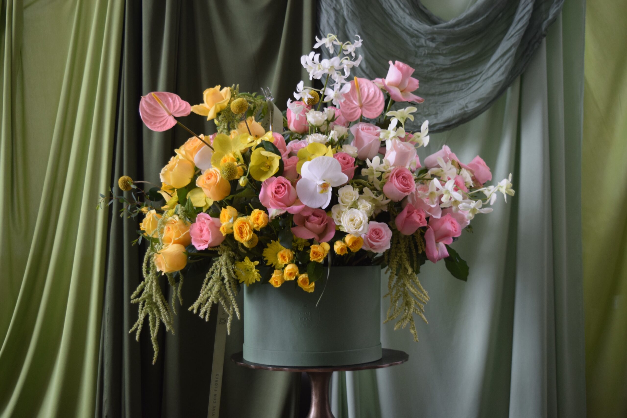 Espectacular arreglo todas orquídeas amaranto